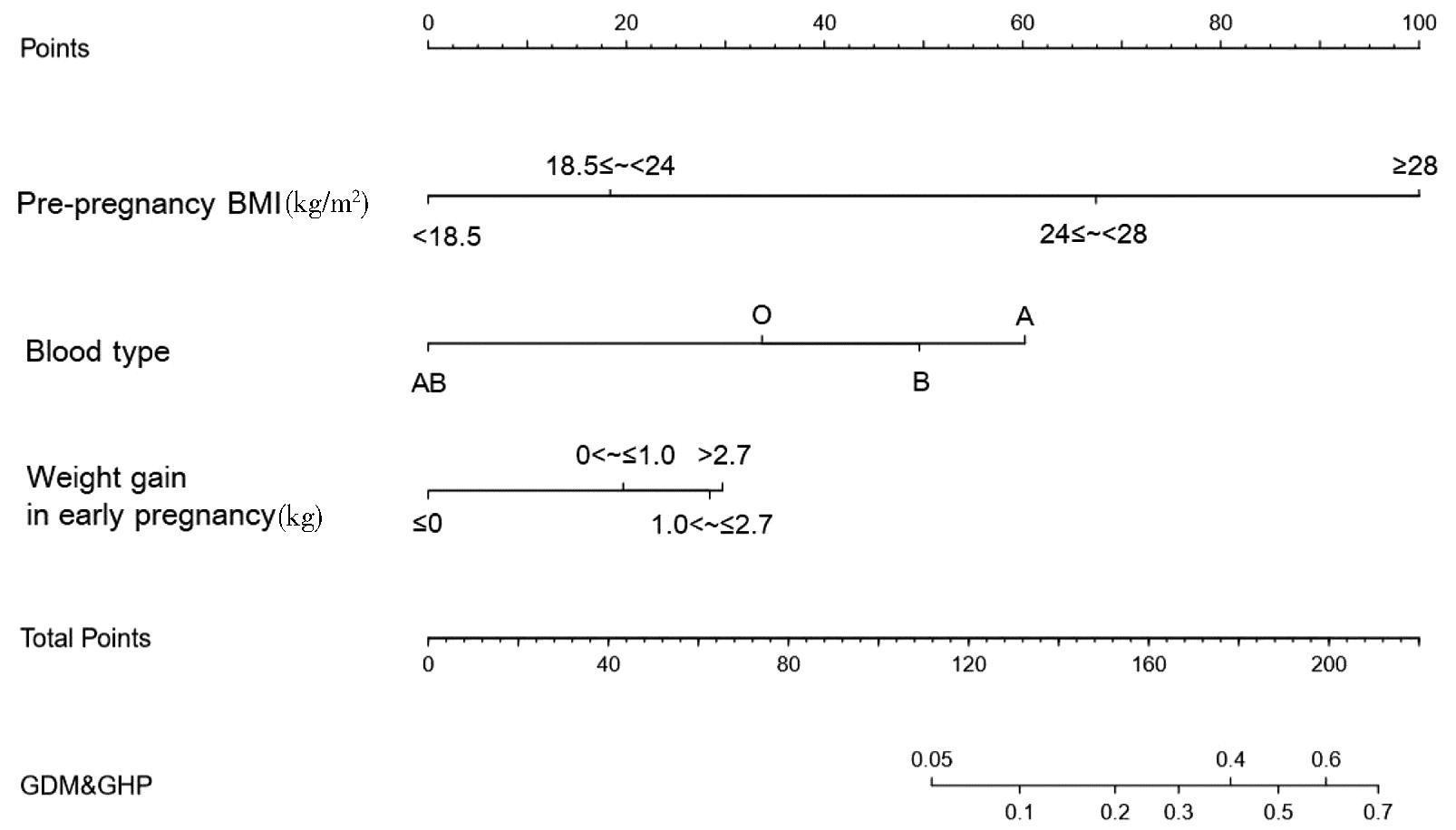 Figure 1 Nomogram for risk prediction of GDM combined with GHP